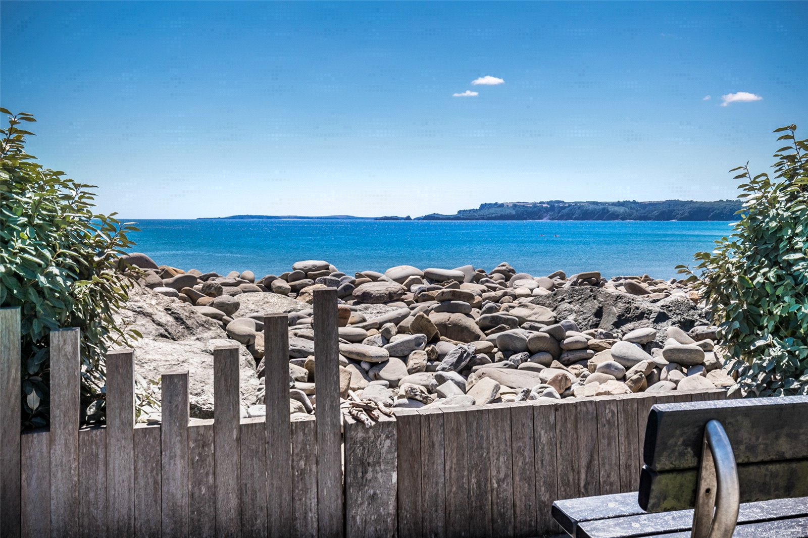 Adjacent to the kitchen, a sun-drenched dining area offers an idyllic setting for enjoying delicious meals while soaking in the ever-changing hues of the sky and sea.