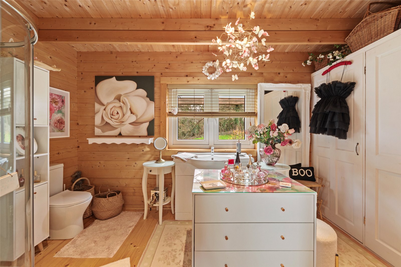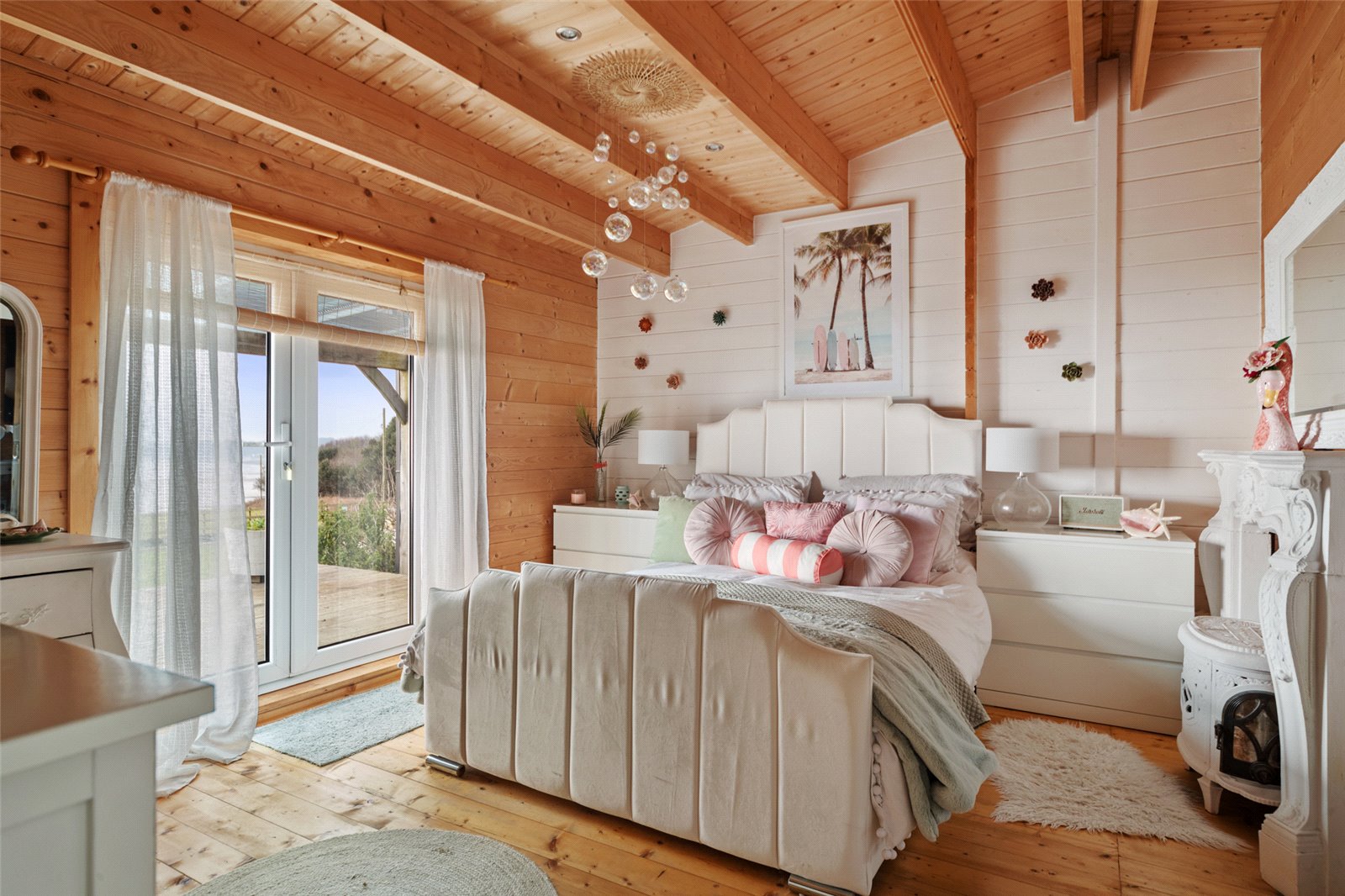 This bedroom is a comfortable double room boasting the use of a separate dressing room and en suite. This room again benefiting from French doors which provide immediate access to the deck and of course views beyond. The adjacent dressing room can if needed be utilised as an office or entrance porch if either if preferred.