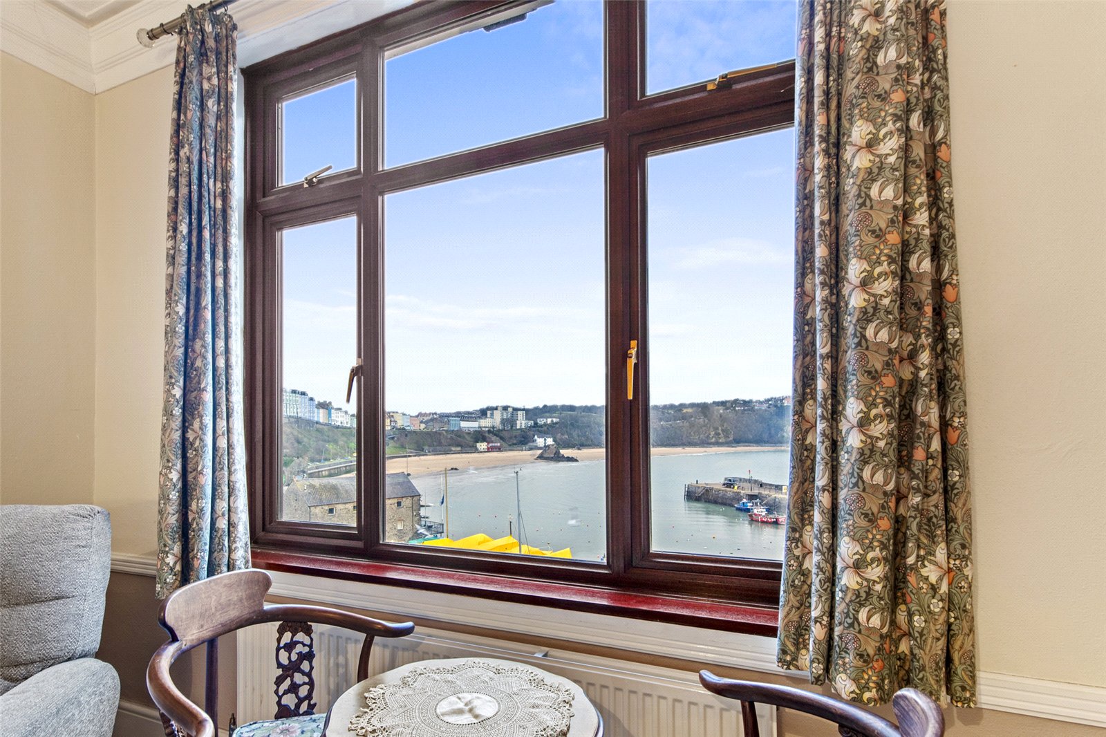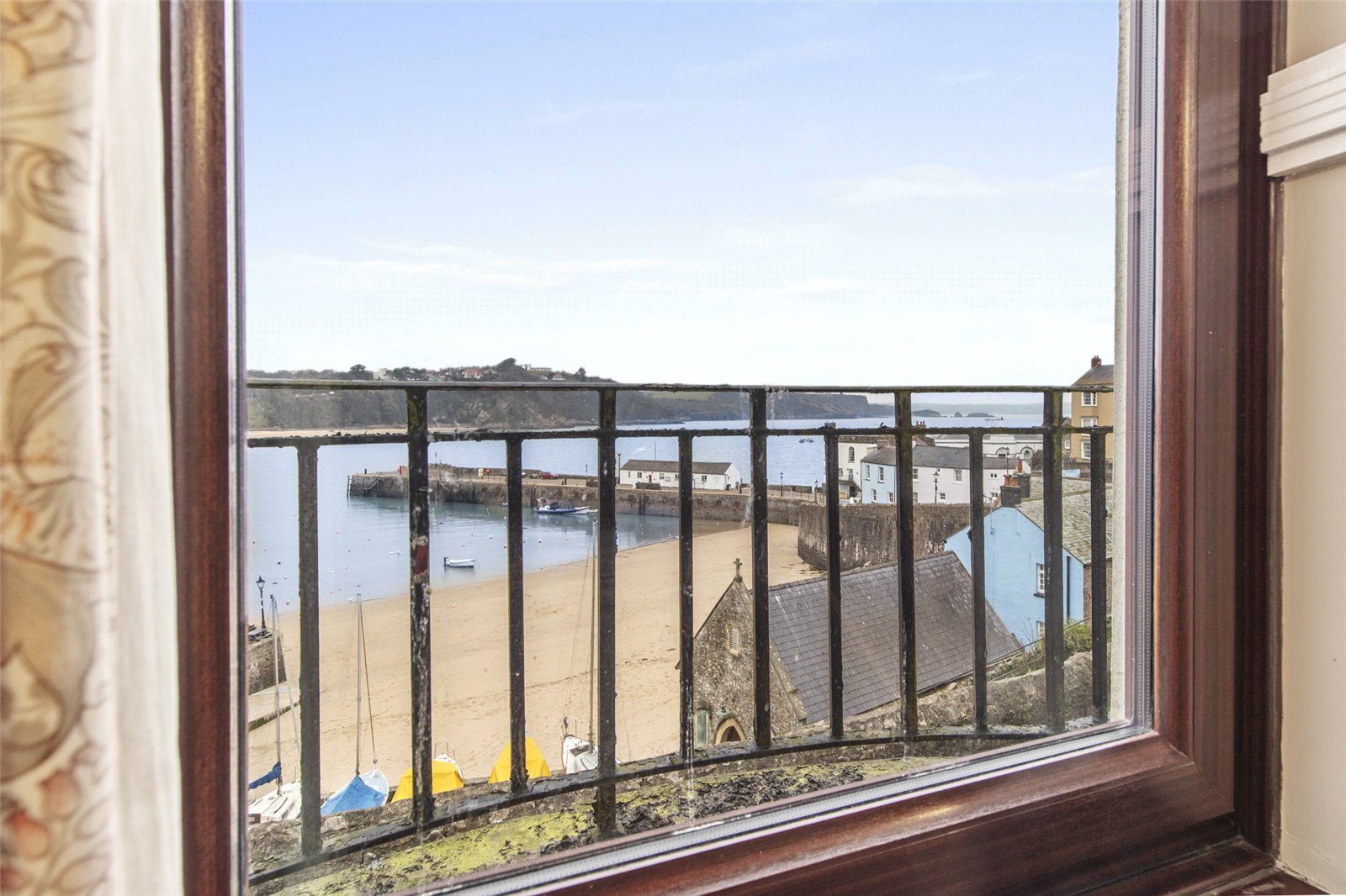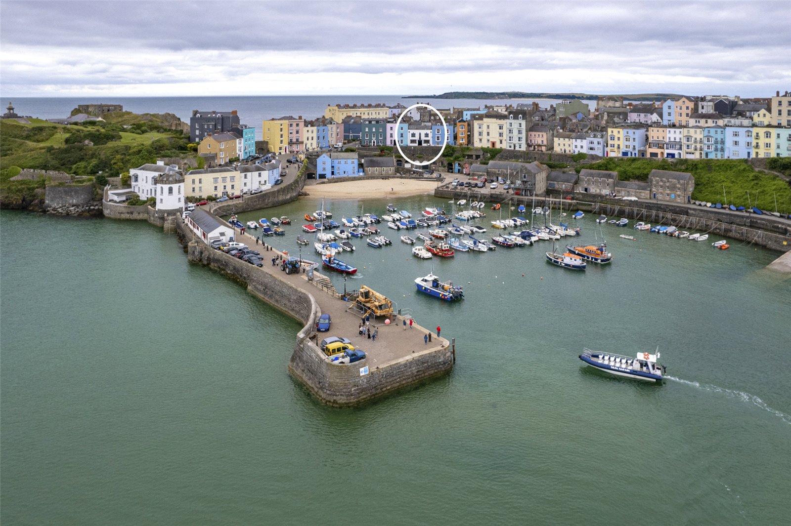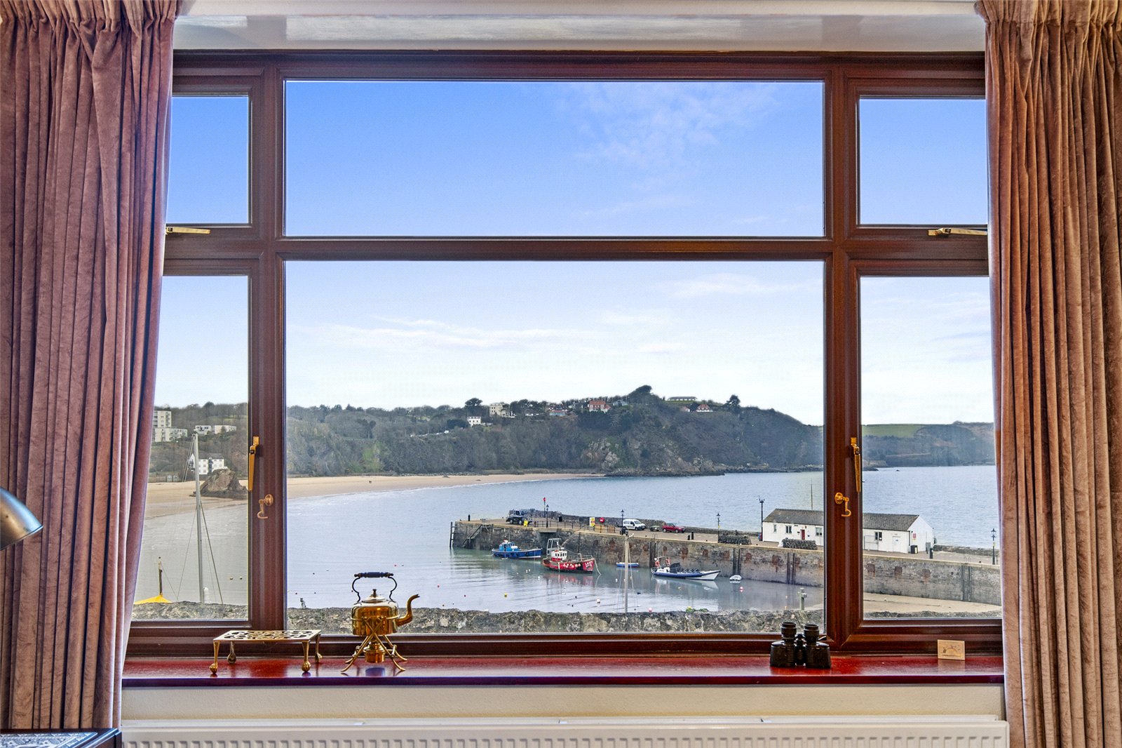 Quayside is a grand 1930s harbour home nestled above Tenby’s picturesque harbour, offering panoramic views of the award-winning North Beach and bustling harbour from almost every room. Rarely does a property on Bridge Street come to market, making this an exceptional opportunity to own a truly unique piece of Tenby’s coastal charm.   With four generously sized bedrooms, this spacious property retains its original 1930s features while blending modern comfort. The tastefully furnished interior includes a striking mix of family heirlooms and contemporary touches, creating a perfect balance of old-world charm and modern convenience.   Upon entering, you'll immediately notice the easy accessibility with shallow steps and a wide, shallow-stepped central staircase. As you ascend, you’ll be treated to even more breathtaking views of the harbour and beach.   The large sitting room features an open gas fire and ample seating for six, making it a wonderful space to relax while enjoying the stunning sea views. To the rear, a library with a selection of local history books, National Geographic magazines, and tide tables offers a quiet retreat for those wishing to explore the area’s rich heritage.   The period dining room, with a large table for six, is perfect for hosting special occasions while taking in the magnificent views. At the rear of the house, a well-appointed kitchen is fully equipped with modern appliances, including an American-style fridge freezer, oven, dishwasher, and a breakfast table. There’s also a small yard and shed, ideal for storing surfboards, beach equipment, or bikes for local cycling events.   The downstairs bathroom is fitted with a bath, freestanding shower, wash basin, and toilet for added convenience.   Upstairs, the master bedroom boasts a king-size bed, an en-suite shower room, fitted wardrobes, and a window table with exceptional sea views. A second double bedroom also enjoys panoramic views and comes with a wash hand basin and wardrobes. The comfortable twin bedroom at the back of the house features large windows looking over the yard, along with twin beds, a wardrobe, and a wash hand basin. An upstairs toilet is conveniently located between the twin and double bedrooms.   The property also offers the exciting opportunity to create your very own wine cellar, adding to its appeal as both a family home and an investment for those seeking a unique property in Tenby.   Quayside is a rare find that won’t stay on the market for long. With its captivating views, generous living space, and character-filled design, it’s the perfect opportunity to secure a slice of Tenby’s historic charm.