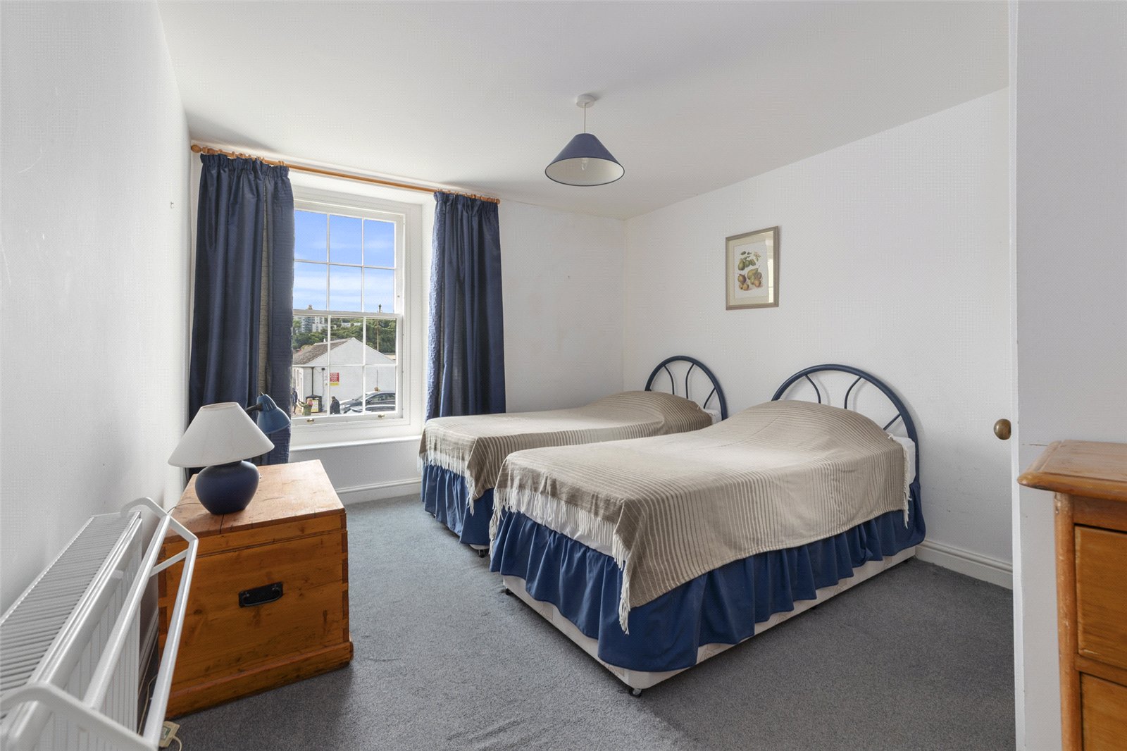 Large bedroom currently utilised as a twin with traditional sash windows and stunning views overlooking Tenby's famous harbour.