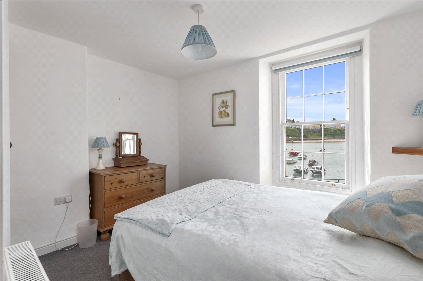 Large double bedroom with traditional sash windows with stunning views overlooking Tenby's famous harbour.