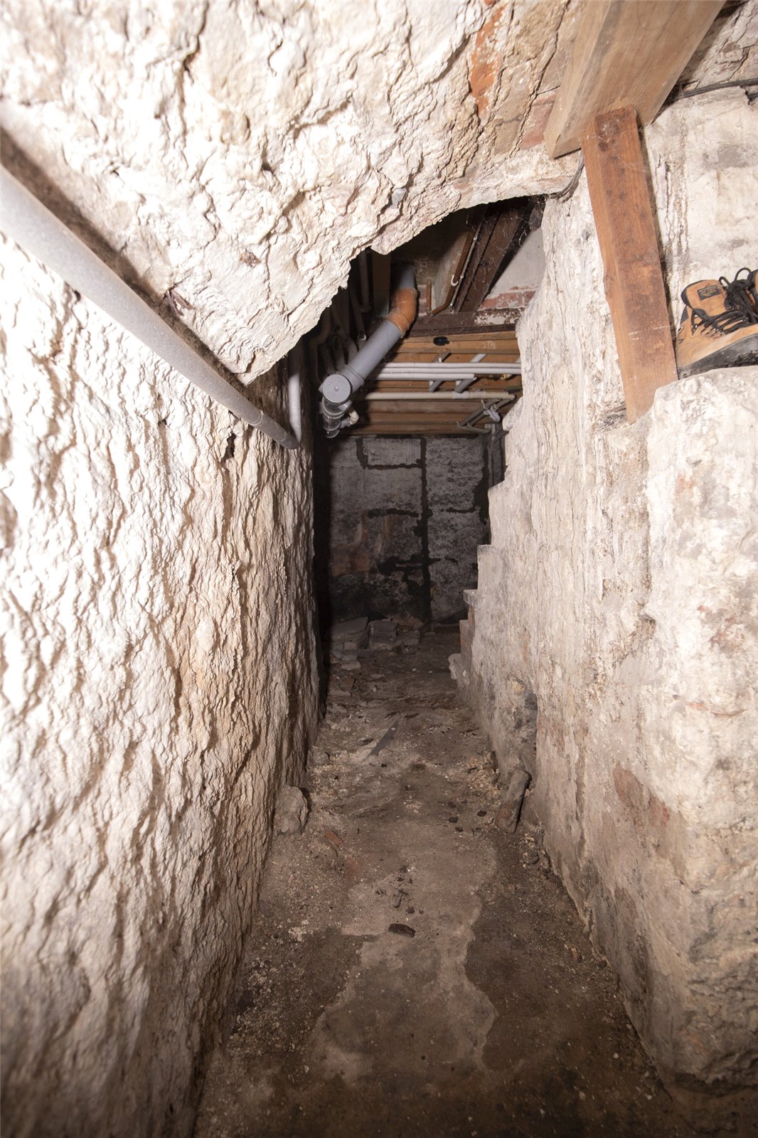 A door accessed through the shower leads to the alluring underground medieval tunnels and can be used for storage or converted.
